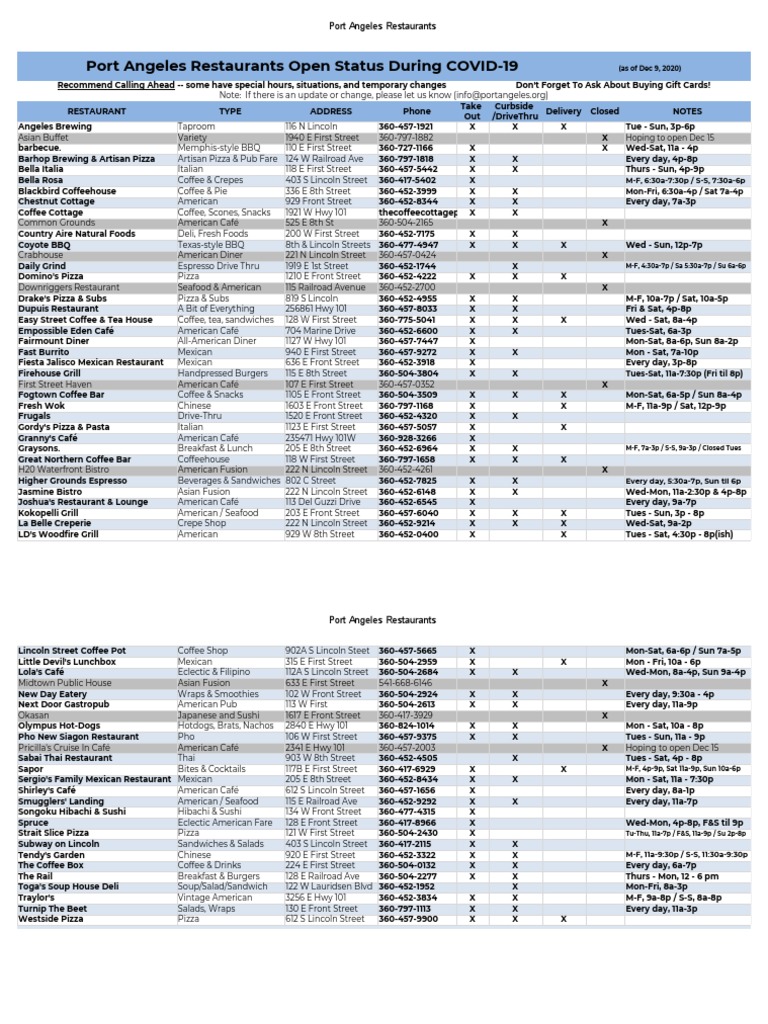 Port Angeles Restaurants List Pdf Coffeehouse Gastronomy